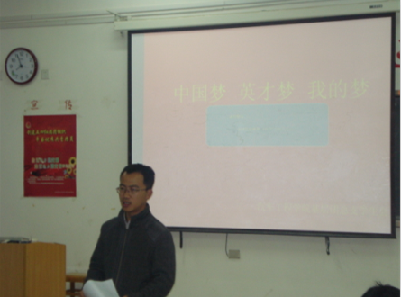 为深入学习贯彻党的十八大精神,引导广大青年学生为实现中华民族伟大复兴而努力奋斗,按照学院团委《关于开展“我的中国梦”主题团日活动的通知》要求,汽车工程学院基层团总支于5月2日晚在综合楼4005,组织开展了“中国梦英才梦我的梦”的主题团日活动。
