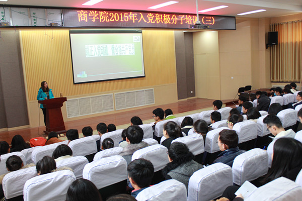 2015年11月24日中午在商学院1001举行了2015级入党积极分子培训的第三场。本场的主讲人是刘雪梅老师。2015级商学院学生代表参加了本场培训。