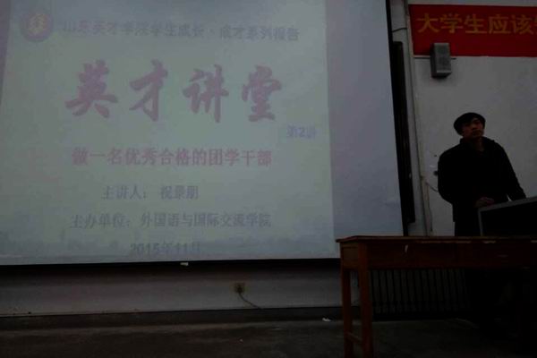 11月23日 中午11:50,外国语与国际交流学院在南校区阶梯教室一举行了“如何当好一名学生干部”为主题的团学干部培训,此次培训由基层团委书记祝景朋主讲,外国语与国际交流学院基层团委、学生会所有成员以及各班级团支部书记、班长参加了培训会。