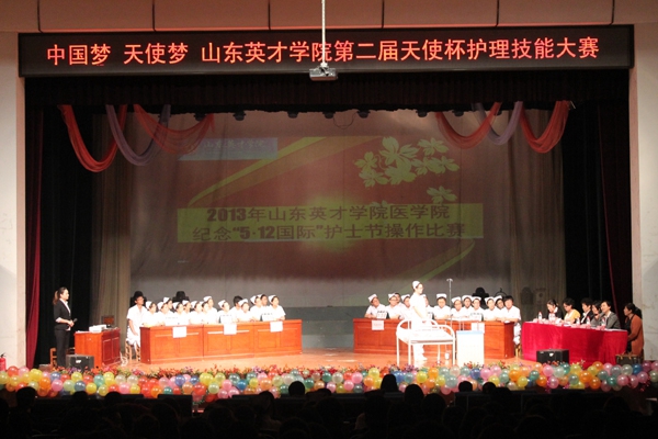 为继承和发扬南丁格尔精神,迎接第102个国际护士节的到来,“中国梦 天使梦”山东英才学院5.12国际护士节系列庆祝活动于5月9日在大学生活动中心隆重举行。本次系列活动共分为两个大的主题,一是我院第二届“天使杯”护理技能大赛;二是庆祝第102个“5.12”国际护士节“授帽・传光”仪式和文艺汇演。