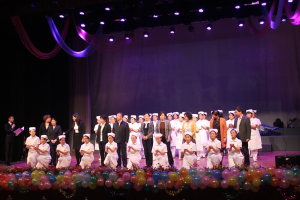 下午18:00,我院又隆重举行了“中国梦天使梦”山东英才学院5.12国际护士节“授帽・传光”仪式和文艺汇演。山东省红十字会谭延玲部长,山东大学教授、硕士生导师、济南市中心医院肖凌风副院长,山东省交通医院王秀丽主任,山东省省立医院赵健副主任,山东大学博士生导师娄凤兰教授,我院党委书记、院长夏季亭教授,以及各二级学院行政副院长应邀参加了本次庆祝活动。活动中受邀嘉宾和学院领导一起为40多名护理学员代表佩戴护士帽,举行“授帽・传光”仪式,仪式庄重热烈,氛围感人,有的学生代表流下了激动的眼泪。随后全体护士起立举行了南丁格尔誓言宣誓。