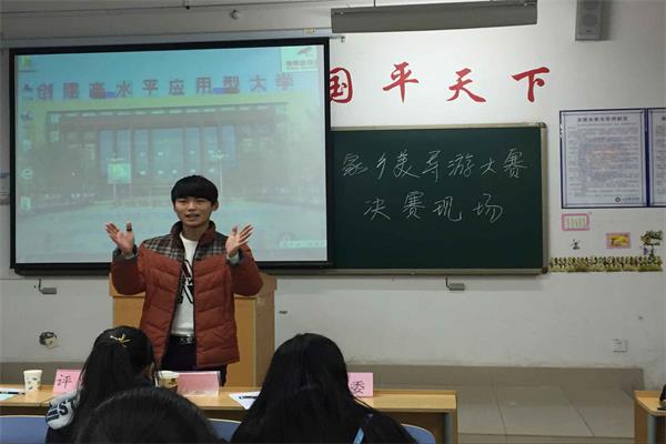 2015年11月20日中午12时整,经济管理学院学生会社会实践部主办的家乡美导游大赛在经管楼119教室举行。校学生会体育部部长孙燕,经济管理学院学生会文艺部部长韩佩锦,经济管理学院学生会社会实践部副部长姜福英以及大学生就业协会实践部部长兼策划室主任豆德茂担任本次大赛的评委。