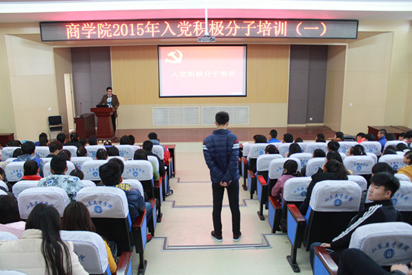 2015年11月23日中午在商学院学术报告厅1001举行商学院2015年“入党积极分子”的培训。主讲人王坤老师,2015级商学院学生代表参加了此次培训。