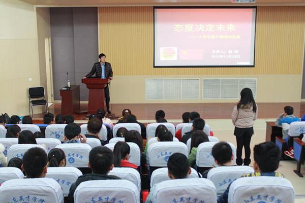2015年11月23日中午,商学院组织学生在商学院2002学术报告厅进行团干部第一场的培训。由赵帅老师进行讲解演说,参与人由各专业各班的精英骨干组成。