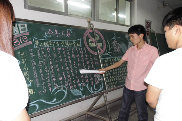 在此次活动中,宣传部首先利用黑板报的形式,将今年无烟日的主题、吸烟的危害等内容运用图文的方式展现,吸引了活动现场同学的目光,不时有同学驻足观看。刘丰吉说:烟草虽小,但危害巨大,生命与烟草的对抗不容小觑,只有更多的人了解了吸烟的危害,才会有更多的人选择远离烟草,珍爱生命。同时,宣传部也以此为契机再次向同学们宣传学院倡导的创建“无烟校园”的目标,使这一利国、利校、利己的活动再一次得到了发展和深化。