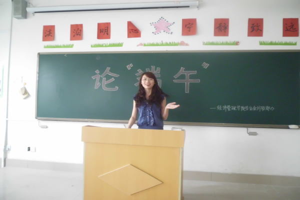 “路漫漫其修远兮,吾将上下而求索。”冬去春来,春去夏至,又是一年一度的端午节。为庆祝端午,让同学们了解更多的端午文化和民间习俗。经济管理学院学生会外联部于2013年6月12日主办了“论端午”演讲交流活动。本次活动由外联部副部长王诗源主持,参加活动的有外联部干事和各班学生代表。