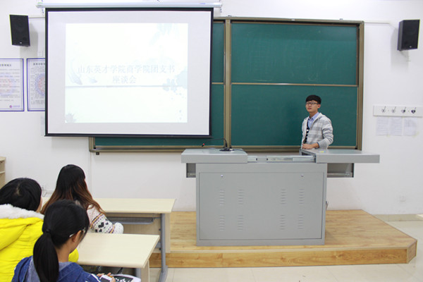 2015年11月19山东英才学院商学院团支书座谈会在商学院2002教室召开。参加此次座谈会的人员有商学院学生会生活部部员,九位大院学生代表大会成员以及2015级各班级团支书,学生会生活部部长主持了此次会议。