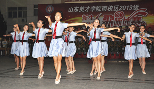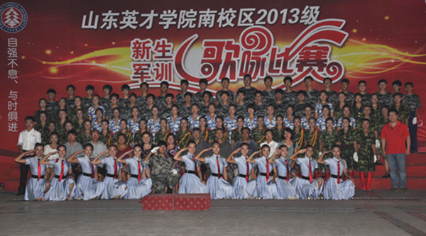 “女兵走在大街上,巾帼风采天地撒。战士的豪情女儿心,心系千万家……”动听嘹亮的歌声响彻整个英才学院。8月22日晚7点,山东英才学院南校区大一新生军训歌咏比赛在我院A楼广场拉开帷幕。山东英才学院副院长李崇银教授、学生处王冠良处长、各二级学院行政院长等领导与大一新生共同观看了比赛.