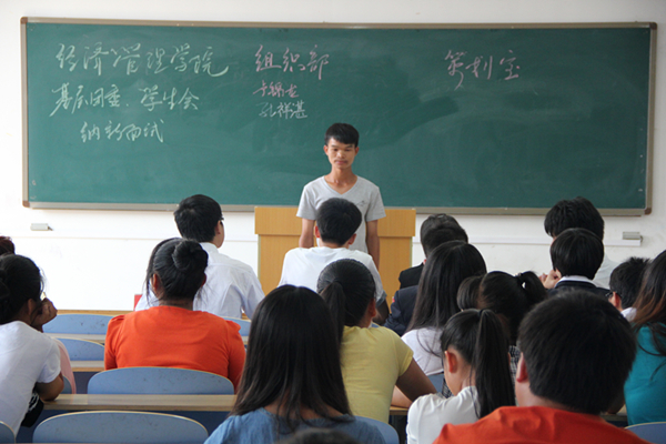 经济管理学院基层团委、学生会于2013年9月3日举行了纳新活动第三项工作――面试(初试),经济管理学院基层团委副书记、学生会主席田萌春,副主席刘丰吉、李敏、李云龙以及全体学生会干部担任此次面试官。