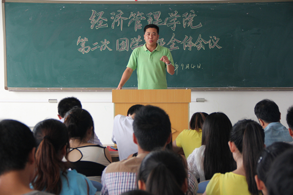 为了促进部门之间的沟通与交流,完善团学工作内部建设。2013年9月4日下午4点30分,经济管理学院基层团委、学生会于教学楼B-507举行第二次团学干部全体会议。参加本次会议的有基层团委书记王鹏飞以及全部团学干部们。