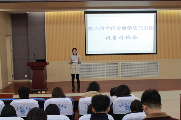 2015年11月13日下午6点30分,由商学院召开的第八届学代会商学院代表团提案讨论会在商学院楼2001举行。参加此次讨论会的是商学院邢辉书记、刘红副书记以及学代会代表团的58人。会议由刘红副书记主持。