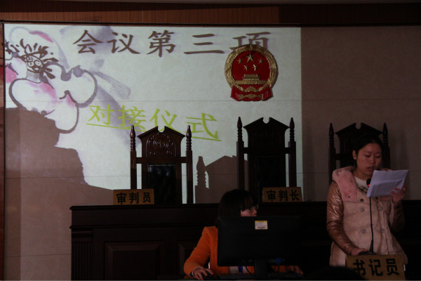 对接仪式开始前,文法学院基层团委书记吴艳,在国旗的照耀下,发出了对西部同胞的同情,对予以他们帮助的渴望,以及表达了我们对西部予以帮助的决心与誓言,高昂意气,朗朗誓声,响彻在不远万里的西方……