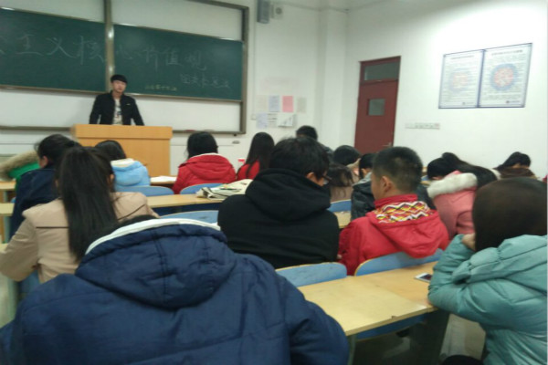 为了落实第十二届全国人大第二次会议的精神,全面贯彻社会主义核心价值观,文法学院2015年11月12日,开展了“社会主义核心价值体观”的理论学习活动分为三级恳谈,,分别由文法学院书记吴艳副书记李敏以及各班团支书对社会主义核心价值观进行解读,同学们一起学习关于社会主义核心价值观的知识,通过对价值观的的学习,我们对于社会主义核心价值观有了更加深入的认识。