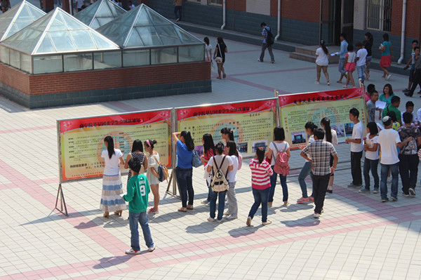 9月2日上午,基层团委学生会在南北综合楼之间设立了咨询报名处,让同学们更加全面的了解基层团委学生会。一到下课时间,前来咨询处的同学特别多,工作人员也在耐心的给他们讲解,工作在紧张有序的进行中。