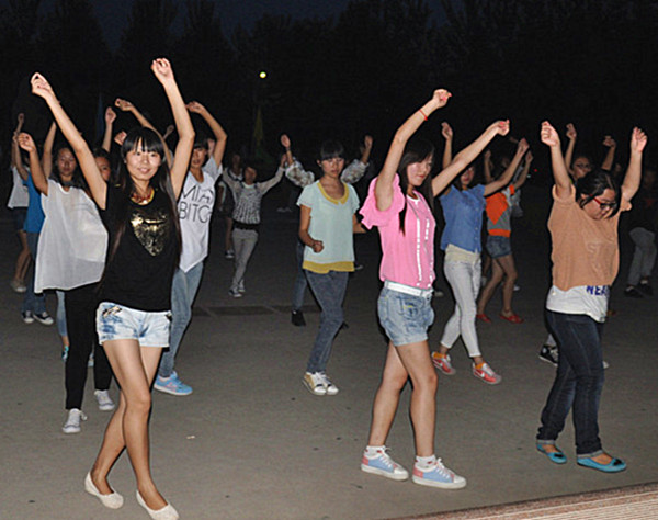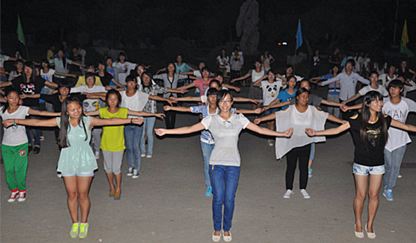 当熟悉的音乐响起时,所有的同学都跟着节奏跳了起来,有一些同学排起了长长的队伍,有一些同学喜欢围成一个圈,还有有些同学们也被活泼的气氛带动,纷纷加入他们的行列,将舞会的气氛推向了高潮。还有一些双人舞,比如《情侣恰恰》、《小狐仙》、《姐姐妹妹站起来》都是大家非常喜欢的舞步。今天舞会的场面非常壮观,上百位同学随着音乐的节奏尽情的跳跃,展现着青春的舞姿,释放的是他们的美丽与自信,是他们青春的正能量。然而,时间还是有限的,不知不觉舞会已经接近了尾声,在一段充满异域风情的《waka waka》舞曲之后,舞会落下了帷幕。同学们带着意犹未尽的心情相继离开,期待着明天他们会以更加澎湃的心情再次来到这个释放自我的舞台。
