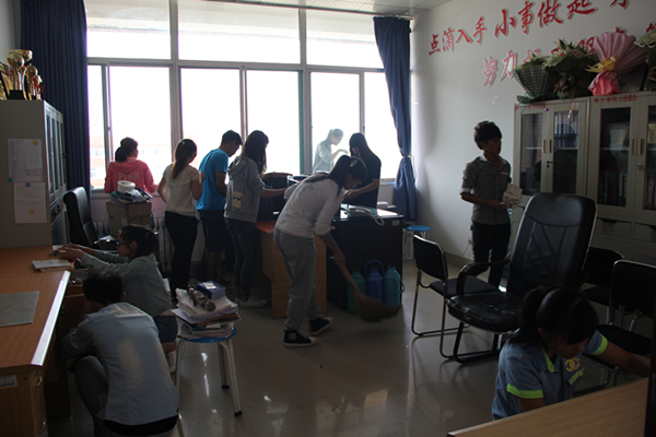 本次感恩活动以清洁教学楼为中心,以打扫各职能部门办公室为重点,从细节出发,为教师节献礼。活动期间,全体团学干部都以积极踊跃的态度参与其中,挥洒着汗水,洋溢着笑容。充分展示了对老师的热爱和感恩。田主席对全体团学干部热情的工作态度表示肯定并提出表扬。最后,经过全体团学干部的努力,整栋教学楼焕然一新,各位老师流露出满意的笑脸。