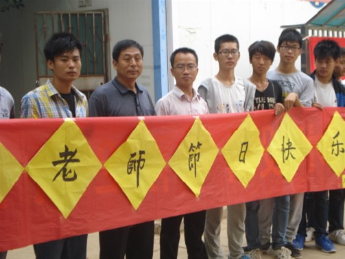 早上七点钟,团学骨干们即在综合楼西侧集合好,准备好移动宣传黑板、宣传条幅等物品,等候老师们的到来。七点二十分左右,老师们陆续来到学院,同学们对每一位老师的到来,均一一进行诚挚的问候:“老师,您辛苦了,祝您节日快乐”,并与老师们合影留念。来到教室,在班长的带领下,同学们全体起立,一起将美好的祝愿送给老师们,让大家感受到学院处处飘逸着尊师重教的浓厚氛围。