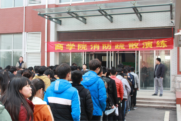 2015年11月10日,我校为强化全院师生的消防安全意识,契合11月9日全国消防安全日的主题,商学院组织一千余名师生及院长参加消防疏散演练。