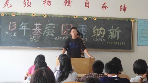由于有之前纳新宣传的充分准备,此次纳新活动开展的井然有序,2013级新生们在讲台上介绍自己,无不体现着他们的热情,自信。各部门负责人作为“面试官”,在讲台下认真听新生的介绍,向新生提问,并且给他们介绍一些应该注意的问题。