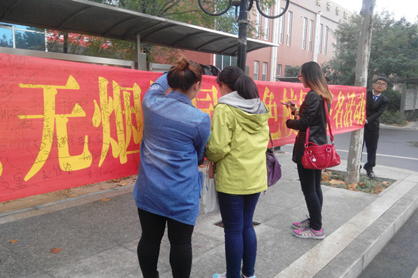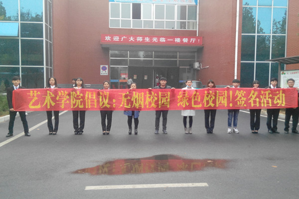 为树立师生良好的精神风貌,远离吸烟危害,创造文明、洁净、优美的校园环境。10月26日中午11点半,艺术学院学生会举办的“无烟校园,绿色校园”签名活动在北校区开展。