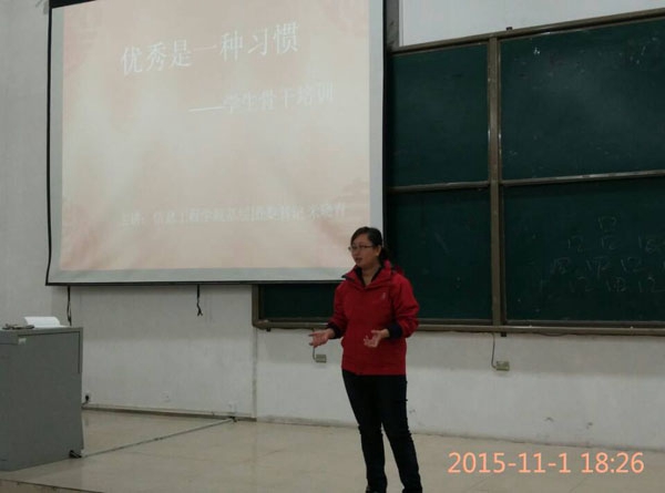 为了增进同学的工作经验,给予大家更好的帮助。2015年11月1日下午5点10分,信息工程学院在弘毅楼1009召开对全体基层团委学生会、班长、团支书展开了培训。此次培训由信息工程学院基层团委书记米晓清进行主讲。