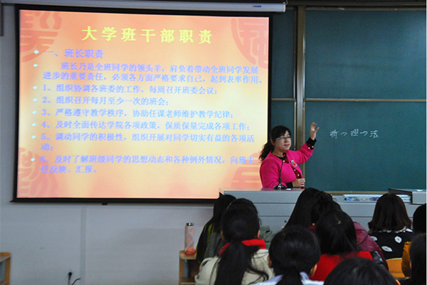 为充分发挥学生干部职责,加强班级建设,学前教育学院于2015年10月26日晚7点整在学前楼4003教室举行了一场团、班级干部职责主题大会,主讲人是学前教育学院行政院长郑雯,参加大会的有基层团委、学生会各部门以及15级各班班委共计115人。