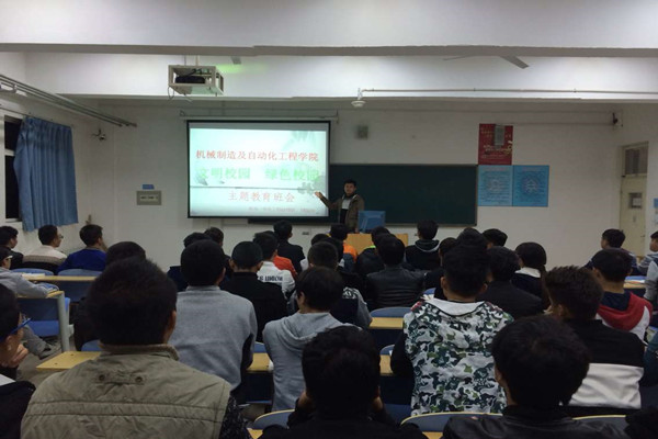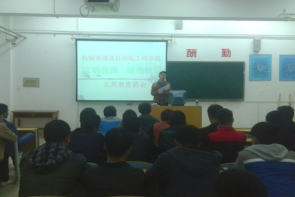 为进一步规范学生的日常行为,营造积极向上、文明礼貌、舒适优雅的校园文化环境,使学生养成良好的文明行为习惯。11月1日晚7点,机械学院在机械南楼组织召开了以“文明校园 绿色校园”为主题的班会。本次班会由学院各年级辅导员主持召开,全体同学参加了此次班会。