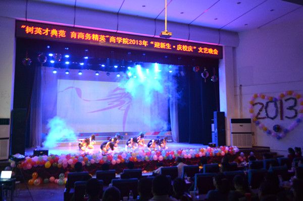 2013年9月30日晚6点整,商学院在大学生活动中心举办了主题为“梦在青春起航”的迎新生、庆校庆文艺晚会。莅临现场观看演出的有学生处处长王冠良、院团委书记龙新良、保卫处处长马先进、保卫处副处长韩长江、医学院行政副院长郭传祯、机械学院行政副院长孔祥全、建工学院行政副院长杨庆年、外国语与国际交流学院行政副院长孙志峰、信息工程学院行政副院长赵全华、机械学院基层团委书记刘阁、汽车工程学院基层团委书记武玉幸。我们商学院莅临观看这次演出的领导有商学院院长刘庆林、商学院行政副院长张永禄、就业副院长连晓亮还有商学院各研教室主任、任课教师代表及全体辅导员老师。