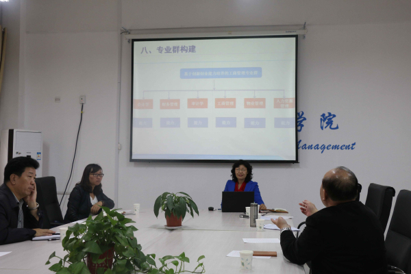 会议开始,经济管理学院教学副院长张黎围绕学科建设发展规划、实践教学条件、教学效果特色、专业群构建等各个方面做了介绍。张兴虎处长就经济管理学院的师资队伍情况、人才培养模式与服务方向、学院学生在各大比赛中的获奖情况、创新能力的培养方法以及存在的相关问题和解决措施展开热烈的讨论。经济管理学院的教师人数包括内聘和协聘在内的共有60人,并且本着“合作互赢、实习与就业紧密结合”的原则,学院加强与行业、企业合作,现今已与LG浪潮电子有限公司、泰康人寿保险公司等多家单位签订实践教学基地协议书。经济管理学院对未来的相关专业建设做好了充足的准备但也存在着相应的不足。会议最后,张黎副院长指出,要加强专业建设规划必须明确目标定位,理清发展思路,明晰自身条件,坚持科学布局,加强统筹规划,建设彰显山东英才学院经济管理学院特色的专业生态体系。张处长表示将共同致力于经济管理学院的专业建设中,为山东英才学院打造出更加合理的专业体系,培养出更多的优秀人才。