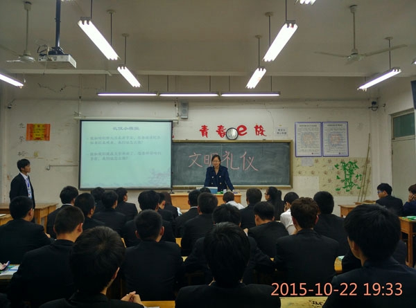 此次班会邀请了米晓青书记及13和14级学长们前来参加此次班会。本次班会受到了辅导员王盼老师及全班同学的高度重视,班会以主持人王士玺真实而感人的致词和一个小段片开始,点明班会“文明礼仪”的主题。此次班会从什么是礼仪讲起,充分展现中华名族的传统礼仪.并且在活动中联系生活,讲述校园文明礼仪与校园安全的重要性。会中,为展现出社交礼仪的重要性,现场由米书记和中兴班的学生进行了互动,将会上的气氛推向了高潮。活动中同学们通过讲述身边同学的故事,指出校园里不和谐现象的形式,无形中对同学们自身行为进行约束,以共同携手,提高自己文明素质,创建和谐校园。