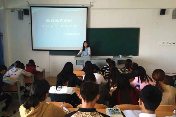 为严肃考风考纪,加强青年大学生的诚信教育,2015年10月13日中午,学前教育学院在学前教育新楼6001开展了一场有关文明守纪,诚信教育的主题教育活动。基层团委书记王坤丽出席并主讲此次恳谈会,基层团委、学生会各部门骨干参加此次恳谈会。