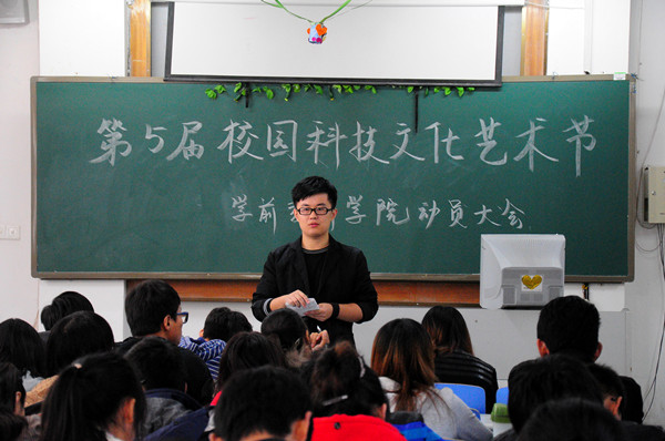 作为展现山东英才学院校园文化艺术建设的一个部分,第五届校园科技文化艺术节内容健康,主题鲜明,引起了学院领导的高度重视。2013年10月16日中午,学前教育学院第五届校园科技文化艺术节动员大会在A-1001召开。学前教育学院基层团委学生会副主席张丰主持并开展会议,基层团委学生会各部门负责人及2013级全体班长、团支书参加了会议。