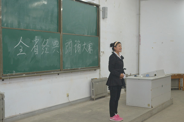 2013年10月17日下午5时,商学院基层团委学生会在阶梯教室四组织了以“传承文明,放飞梦想”为主题的朗诵比赛海选。本次活动由商学院学生会文艺部主办,参加此次比赛的有2013级各班参赛选手以及文艺部全体成员。