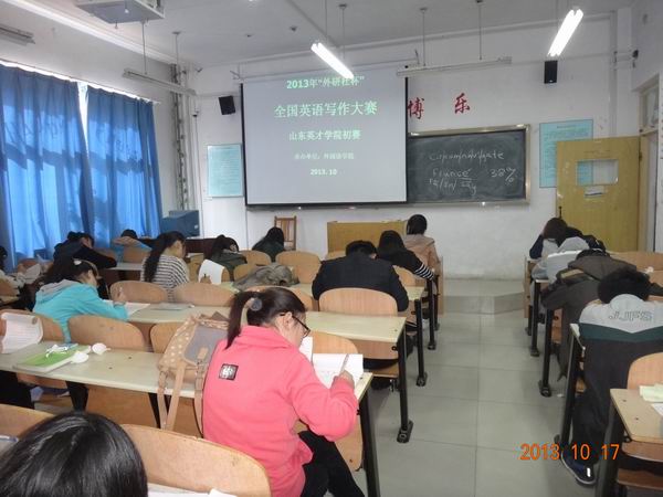 近日“外研社杯”全国英语写作大赛山东英才学院初赛在南校区D号教学楼D-2004,D-2006,D-2008多媒体教室顺利进行,并圆满结束。