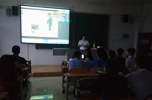晚18时,演习活动正式开始前,演习负责人向各班学生代表进行了一节安全培训课。他向学生提出了“七个字,三个点”的消防意识要点:第一,同学们平时一定要保持良好的消防安全习惯,禁止将火种带入教学楼、寝室等人员聚集场所,从根源消除火灾隐患;第二,119是我国的火警求救电话,当有火灾发生时,应第一时间拨打火警求救电话向火警求救;第三,面对火灾一定要冷静、镇定、不慌乱,采取正确的自救、求救措施。随后,演习负责人讲解了有关火灾现场的应急处置方案,灭火器的使用原理以及相关的注意事项,同时现场实物示范了灭火器的使用方法。