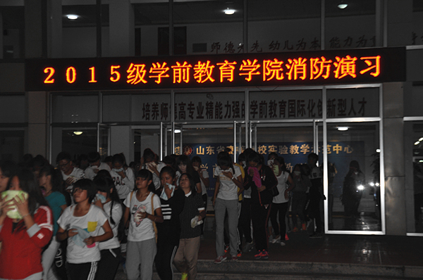 为了进一步加强学校安全工作,增强学校师生消防安全意识,提高学生对火灾的应急扑救处置能力,本着坚持“安全第一,预防为主”的方针和“以人为本”的思想,9月22日晚在学前新楼的门口,学前教育学院组织2015级学生进行了消防演习。