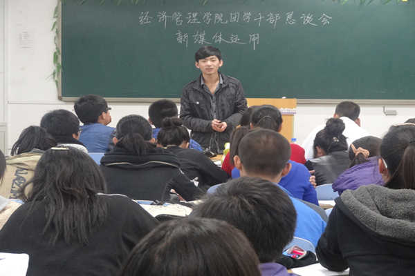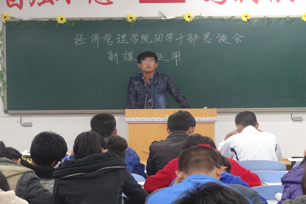 伴随因特网的快速发展,新媒体应用广泛走进了人们的生活、学习与工作。为促使新媒体应用投入到团学工作,给予经管学子更开阔的信息传递与交流平台,为经管学子更密切的关注英才学院的发展动态提供便利,2013年10月21日20点,经济管理学院基层团委、学生会策划室组织各团支部积极举行“应用新媒体,时尚新生活”主题恳谈活动。