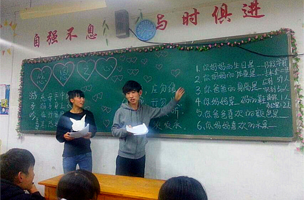 十一月的脚步来临,又谈起了感恩这个老话题。10月23日晚19:00,学前教育学院基层团委科技创新部在A楼2013级各班教室举行了以“感恩”为主题的班会。