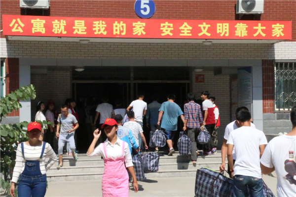 早上八点,经济管理学院基层团委、学生会的各个部门在基层团委书记赵昆带领下,去校门口迎接国际交流学院同学们的到来,各式的欢迎语,让校园充满了温情,当载着他们的车辆进入北校区的那一刻,原本寂静的场地被一阵热烈的掌声打破了沉静。 当校车停下后,各部门在经管学院基层团委书记赵昆、副书记黄涛及各部长的指挥下,帮助国际交流学院的同学们搬行李入住宿舍。经济管理学院的同学们以饱满的热情迎接北校区新的入驻学员。这个温馨的校区里,同学们用笑容代替搬东西的劳累。上午10:20第一批入驻学生已经走进了自己新的宿舍,新环境勾起了他们的好奇心,跟随本校同学观赏学校区。12:10迎来了第二批入驻学员,同样怀着饱满的热情来迎接他们,丝毫没有懈怠。下午13:00迎接仪式圆满结束。