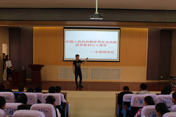 2015年9月13日,商学院在商2001新楼学术报告厅举行了中国人民抗战暨世界反法西斯胜利七十周年主席恳谈会。出席会议的有商学院团委副书记、商学院学生会基层团委各部门部长,商学院基层团委学生会各部门所有人员参加了此次会议。会议由商学院学生会主席主持。