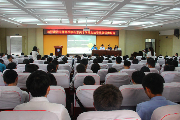 受文法学院邀请,2015年9月11日上午,河北世纪方舟律师事务所全国著名律 师康 君元律师及其率领的尚法团队,在北校区学术报告厅作了题为“从实习律师走向大牌”励志讲座。讲座形式新颖多样,内容非常切合学生内心需求,现场气氛活跃,主讲人与学生互动融洽,笑声掌声不断。本次讲座取得圆满成功。