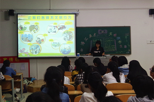 为了进一步加强校园文明建设,传承优良的校风和学风,帮助同学们树立较好的礼仪行为规范。学前教育15级各班于2015年9月10号晚7时在学前教育新楼开展了“四海汇英才,文明做书生”的主题班会。