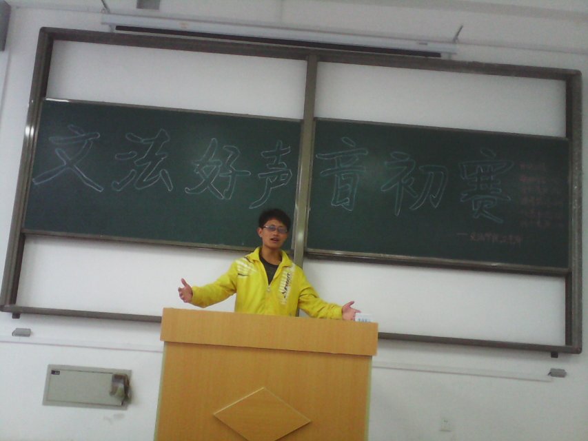 2013年10月29日晚17时,文艺部全体成员和学生会骨干齐聚402教室开展了文法学院第二届“文法好声音”初赛选拔,报名参赛选手有24个,伴随着主持人宣读比赛细则的结束,文法好声音初赛开始了......