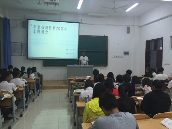 在此次主题班会主题活动中,商学院各个专业和班级自行组织,主题上鲜明一致,内容上丰富多彩。各班老师通过历史图片,历史录音、历史纪录片回顾等各种形式。例如李帅老师向学生们提供电影片段《南京!南京!》。通过一名普通日本士兵和一名普通中国士兵在南京大屠杀期间的经历,展示了在抗日战争中我国人民所受到的伤害,揭示了战争对人性的摧残,告知同学们,反对战争、捍卫和平是全世界人民的共同使命;侯迎春老师在班内组织学生学唱《义勇军进行曲》等。各班级老师向学生们讲授英雄事迹,从而达到了使学生“铭记历史、缅怀先烈的目的,加深了对”珍爱和平,开创未开”的理解。