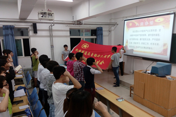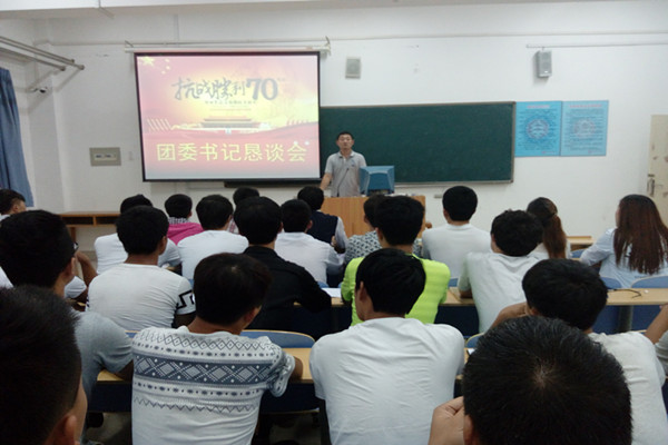 重温入团誓词历史的车轮虽然已悄然滑过了半个多世纪,但这段泪中带血、耻辱中彰显刚毅的民族奋斗史永远也不会被每一个有良知的中华儿女所忘记!在全国人民缅怀革命先烈之时,为纪念中国人民抗日战争暨世界法西斯战争胜利70周年,激发广大团员青年的爱国主义情怀,教育青年勿忘国耻、缅怀先烈,弘扬传统、牢记责任,自觉将自身的理想与实现中华民族的伟大复兴紧密结合起来,立足岗位,勤奋敬业,奋发学习,立志成才,为学院发展贡献力量。2015年9月3日,机械学院基层团委在实训南楼4012教室举行了“纪念抗日战争胜利70周年”团委书记恳谈活动。基层团委、学生会全体学生干部参加了此次恳谈,恳谈活动由基层团委书记刘阁主持。