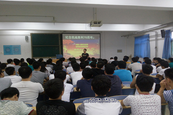 今年是世界反法西斯战争暨中国人民抗日战争胜利70周年。为纪念中国人民抗日战争暨世界法西斯战争胜利70周年,激发全体同学们的爱国主义情怀,弘扬革命精神,增强学生的爱国主义情感,机械学院于2015年9月2日开展了“纪念抗日战争胜利70周年”主题教育班会活动,缅怀为国捐躯的革命先烈。
