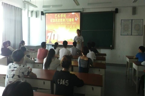 9月3日,艺术学院纪念中国人民抗日战争暨世界反法西斯战争胜利70周年书记恳谈会在北校区艺术楼504教室隆重举行。艺术学院基层团委书记王志涛出席会议并讲话,他强调,要认真学习贯彻习近平总书记在纪念中国人民抗日战争暨世界反法西斯战争胜利70周年大会上的重要讲话精神,大力弘扬伟大的爱国主义精神和伟大的抗战精神,团结一心、奋力拼搏,锐意进取、积极作为,扎实推进“开辟新局面、建设新艺术”的年初目标,奋发有为建设伟大祖国。艺术学院基层团委学生会全体学生骨干出席会议。