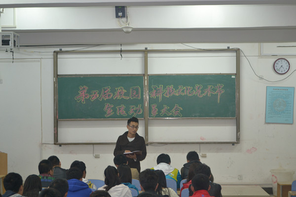 2013年10月30日,商学院基层团委学生会于综教北楼4010召开了以“第五届校园科技文化艺术节”宣传大会。参加此次会议的有:商学院学生会主席李进,商学院基层团委学生会全体成员。
