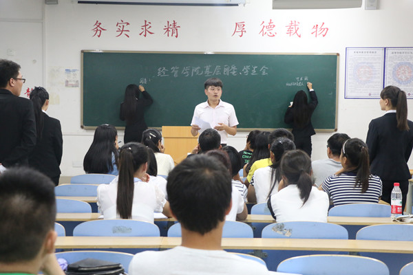 为促进我院学生工作更加规范,加强学生政治思想教育的时效性,加快新老交替,经济管理学院基层团委、学生会于2015年8月26日特组织纳新活动,面向全院15级新生公开招选学生会各部干事,本次纳新活动将持续到9月6日,活动由学生会主席齐放携各部门正副部长共同参加。