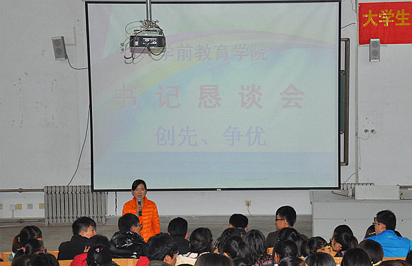 本次恳谈会的主题是“创先争优”,王书记对于近期学院举行的儿童舞大赛,辩论赛,及演讲比赛中取得优异成绩的班级表示了祝贺。对于其他班级来说,被表扬的班级是他们学习的榜样,学习他们的长处,将自己的班级管理的更出色。同时书记也鼓励各班班长、团支书要不断创新,实现在创新的基础上打造自己班级的特色。此外,班长和团支书还对学生会的各个部门提出了自己的意见和建议。通过这种方式,班级骨干和学生会骨干对于日常管理有了更好的交流,方便了整个学前教育学院的工作管理。王书记也对大学生中普遍存在的心理问题进行了教育和引导。她讲到只有拥有了良好的身心才会有更好的发展,更好的未来。